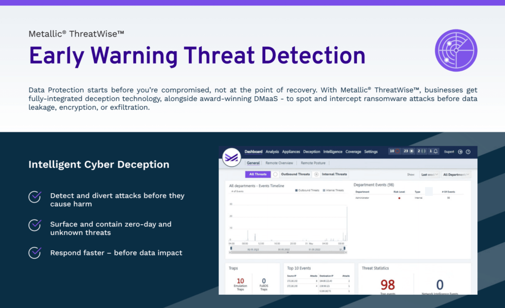 In late September Commvault announced their new Cyber Deception Platform: Metallic ThreatWise. Metallic ThreatWise aims to surface unknown and 0-day attacks from bad actors before they get your company’s resources.