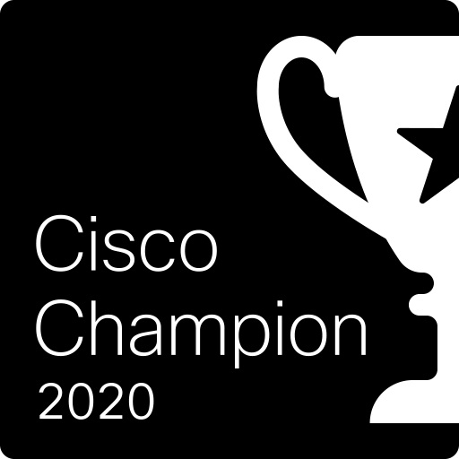 In 2021 I was named a VMware vExpert, for the 5th year in a row, for my work as a VMUG Leader in the Burlington, Vermont area. Additionally, my blog was honored to be named a finalist for the 2019 Cisco IT Blog Awards in the category of Best Certification Journey! In 2021 I’ve been named Cisco Champion for the 3rd year in a row!